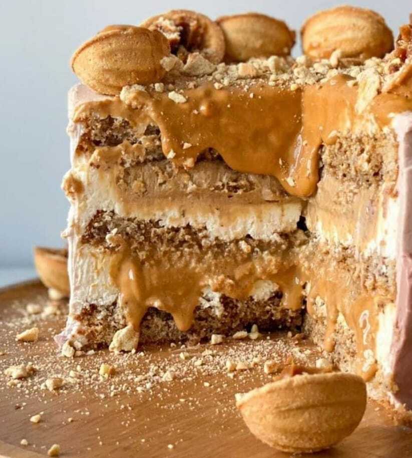 Рецепт торта необычен и сочетает в себе шоколадные коржи, слой сливочно-сырного, карамельный мусс с арахисом ,соленую карамель, арахисовую пасту и толстый, толстый слой шоколада))