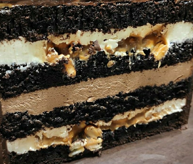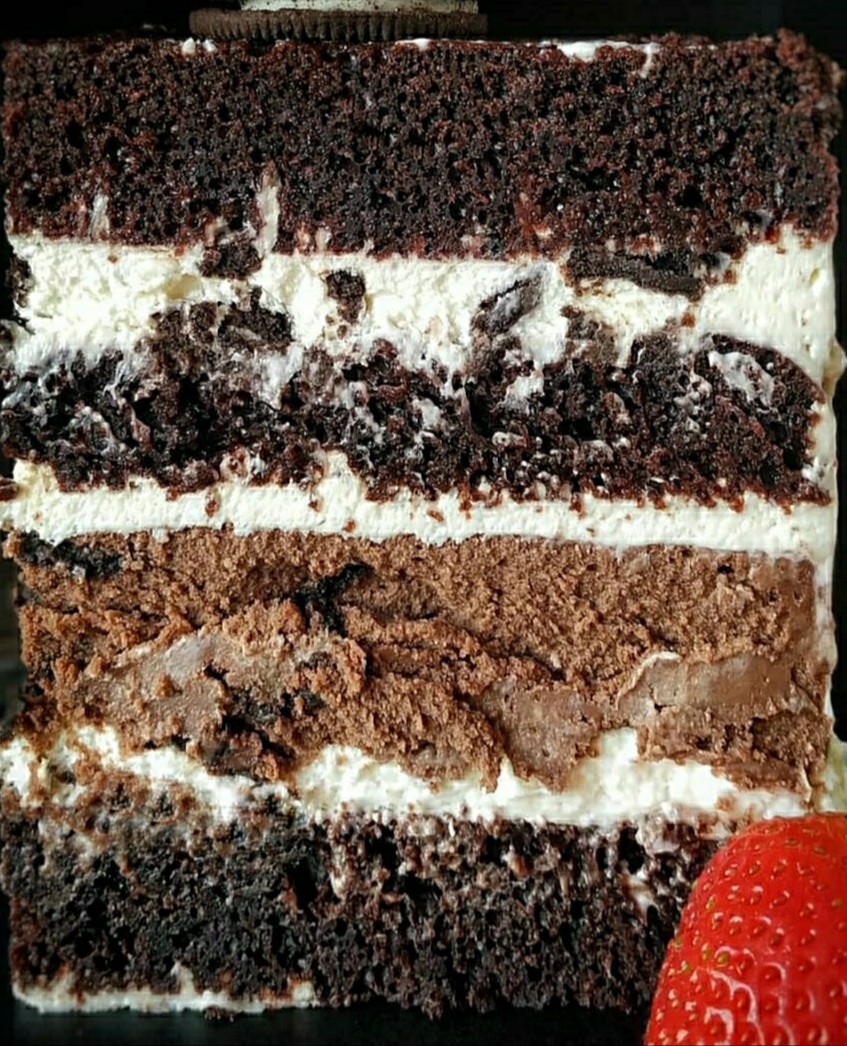 Сочный ароматный шоколадный бисквит, пропитанный ромом. Нежный орео крем и чизкейк с любимым орео.