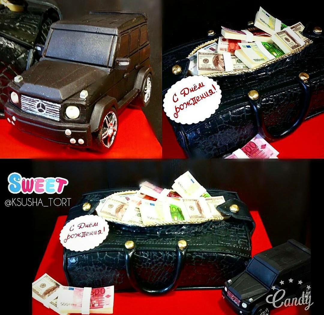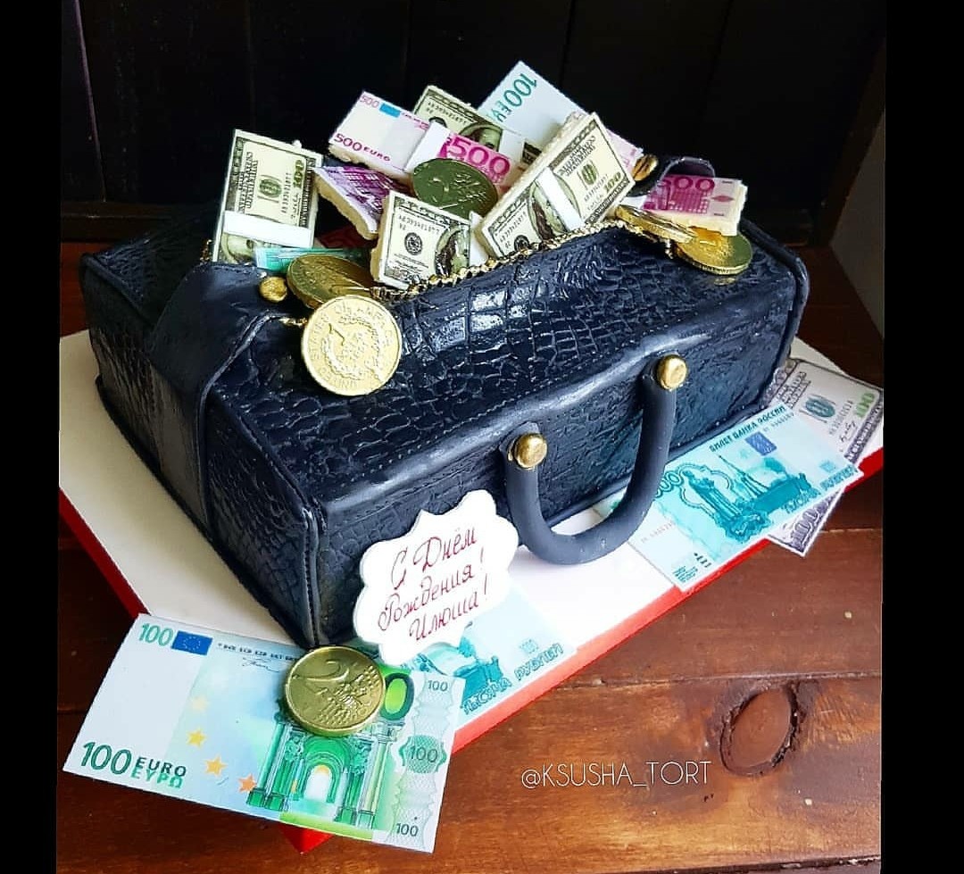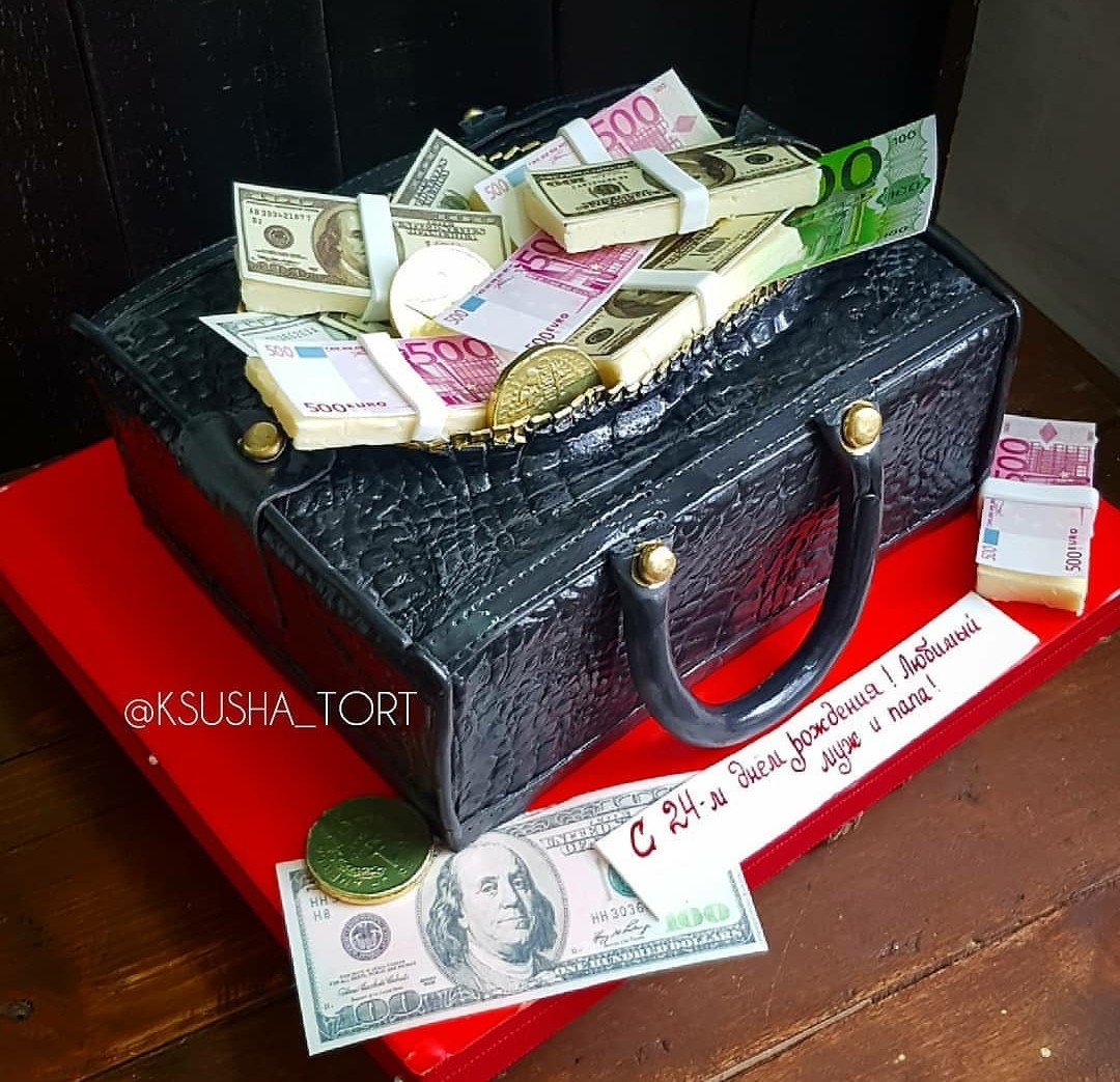 Торты с чемоданами (сумка, кошелек, мешок)