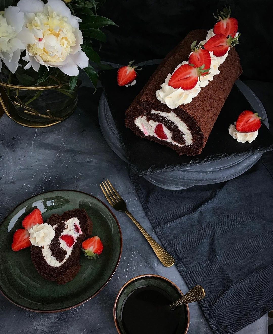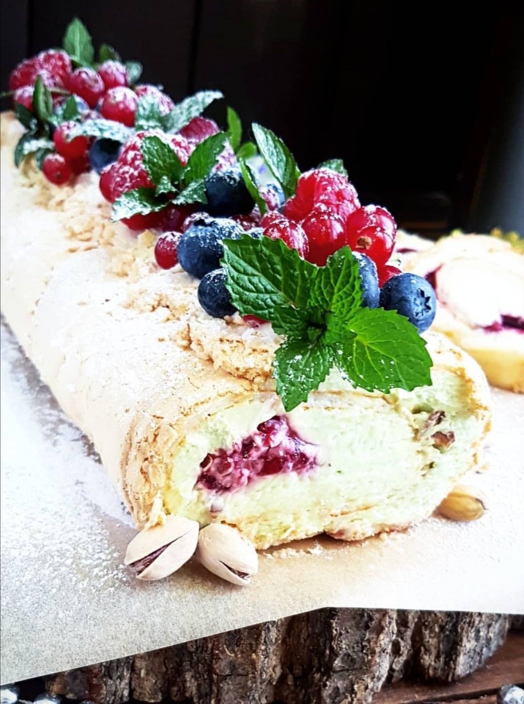 Шоколадный рулет со сливочным кремом и ягодами