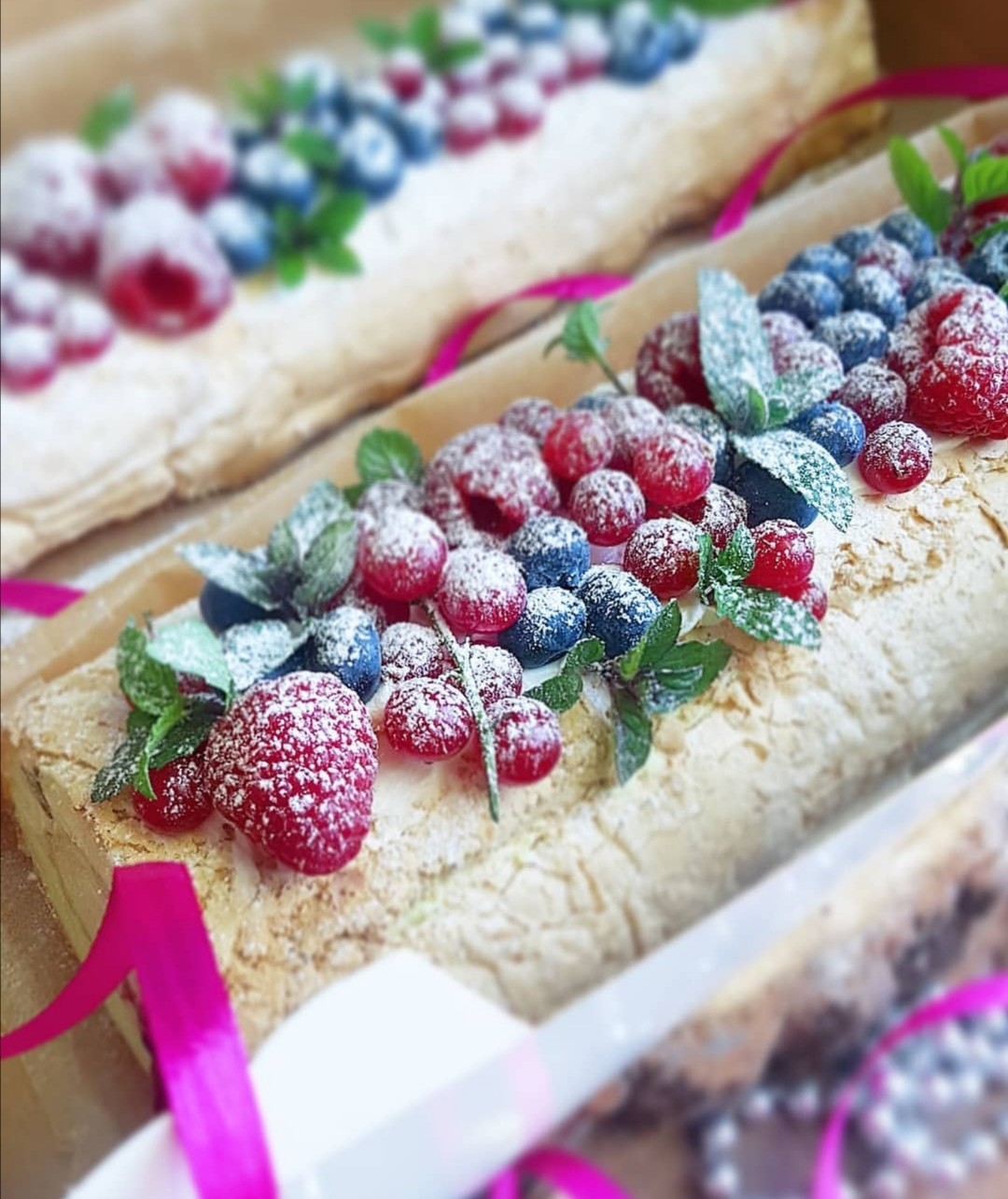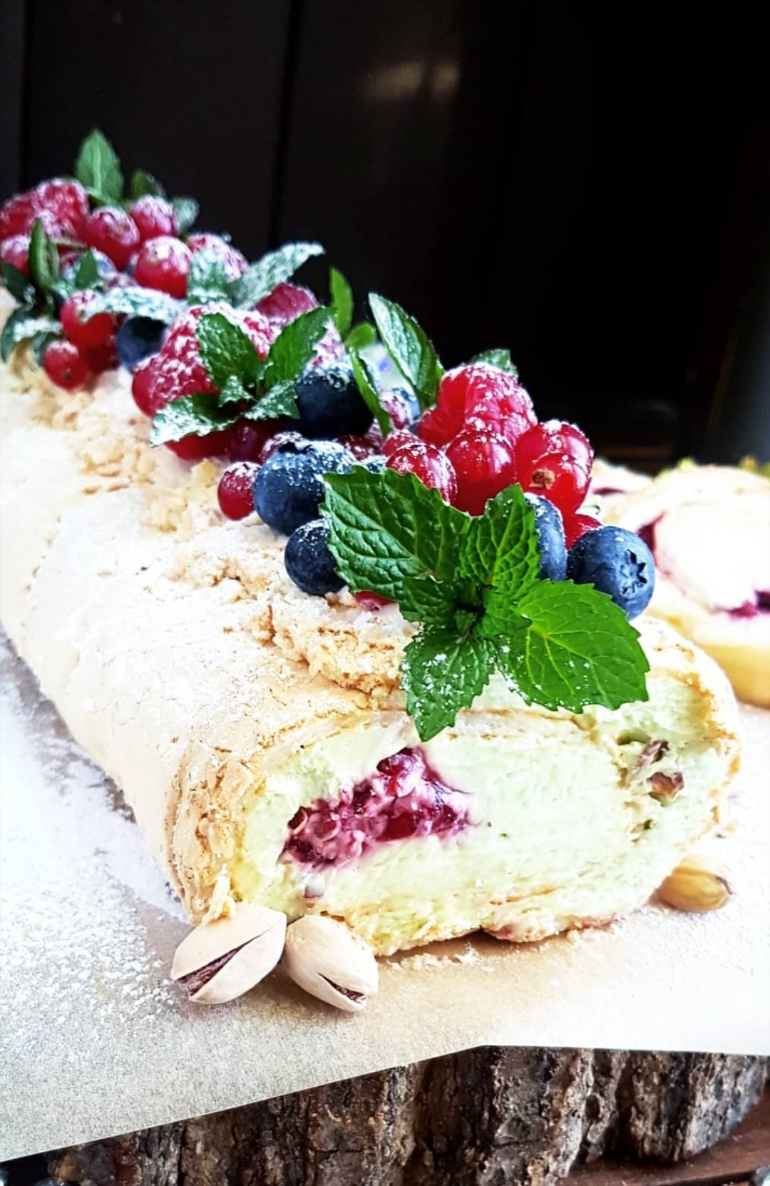 Ванильный рулет с кремом крем чиз и ягодами