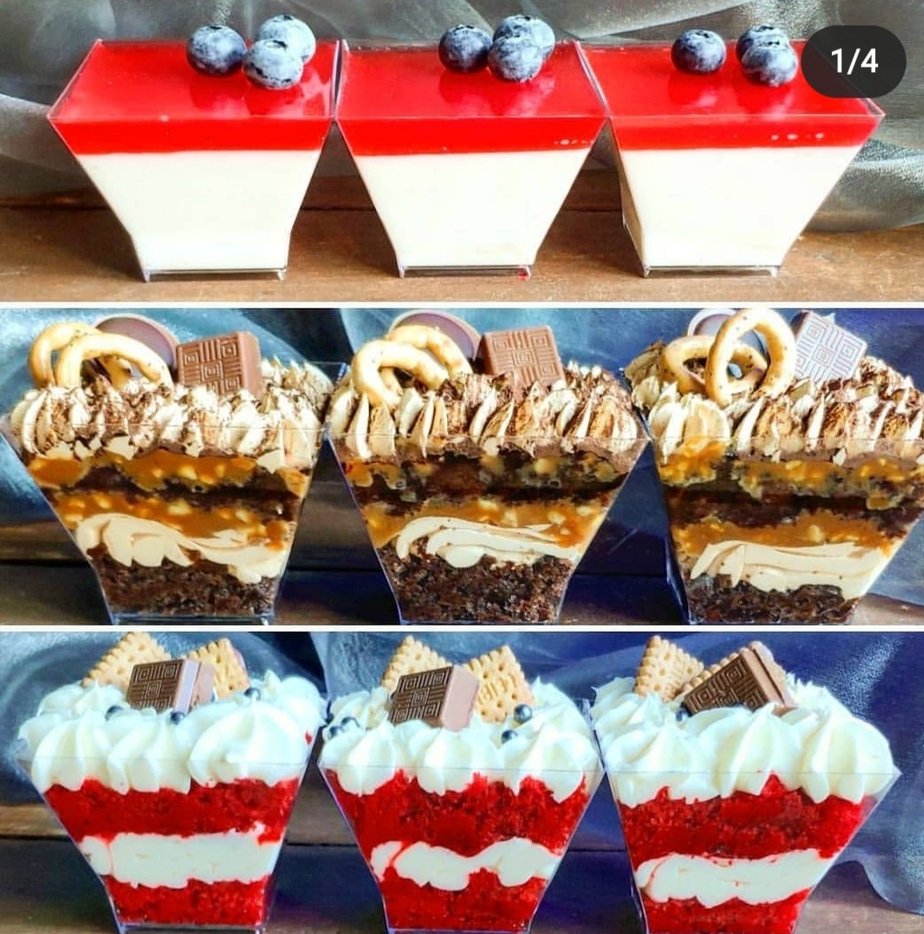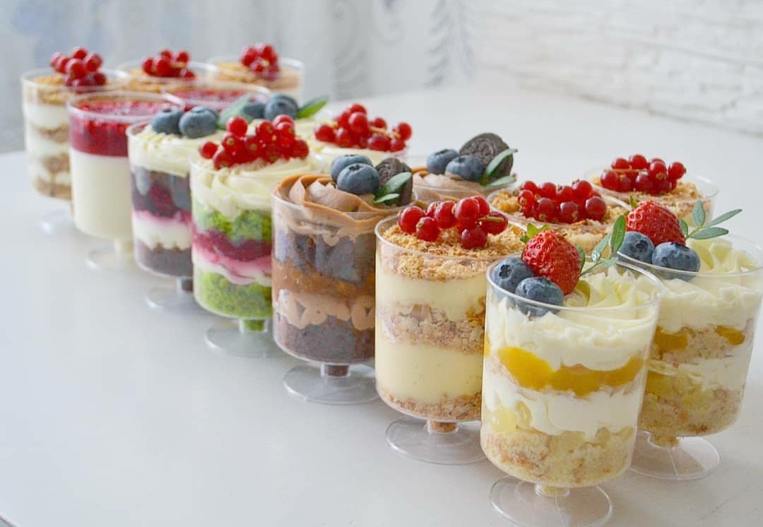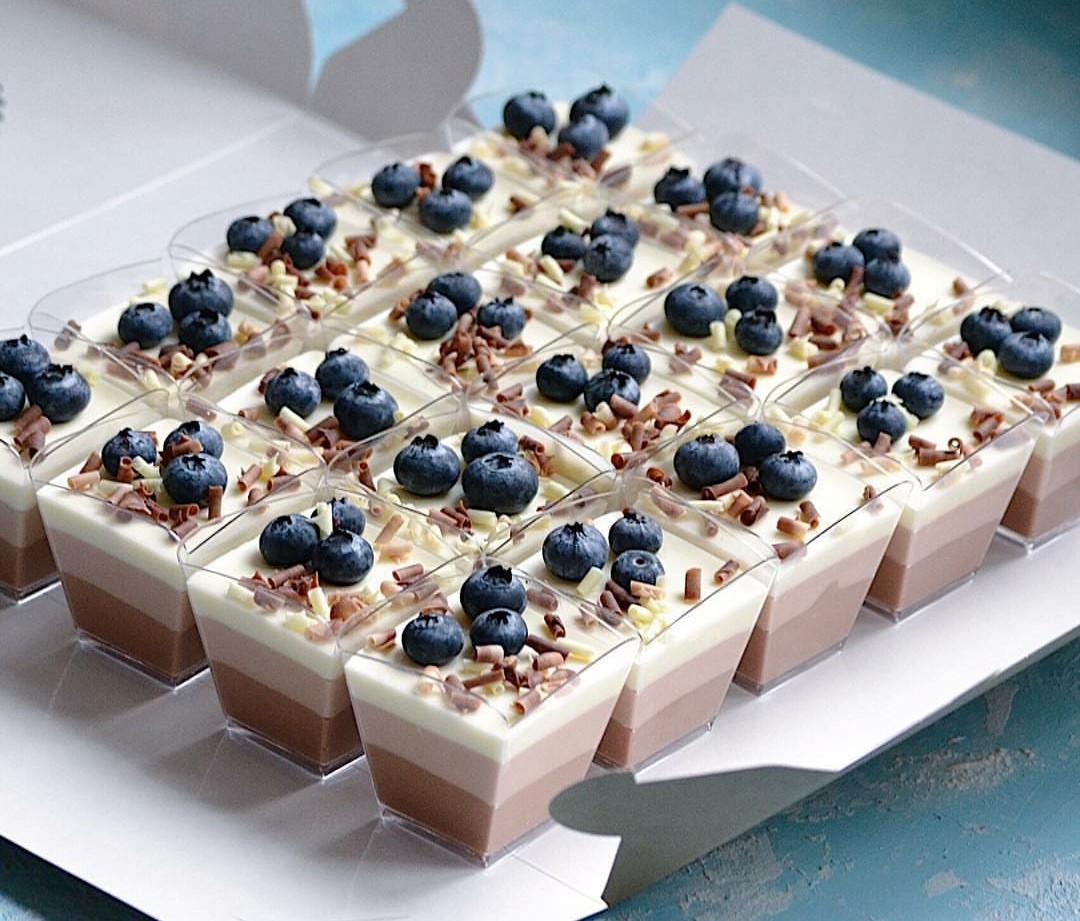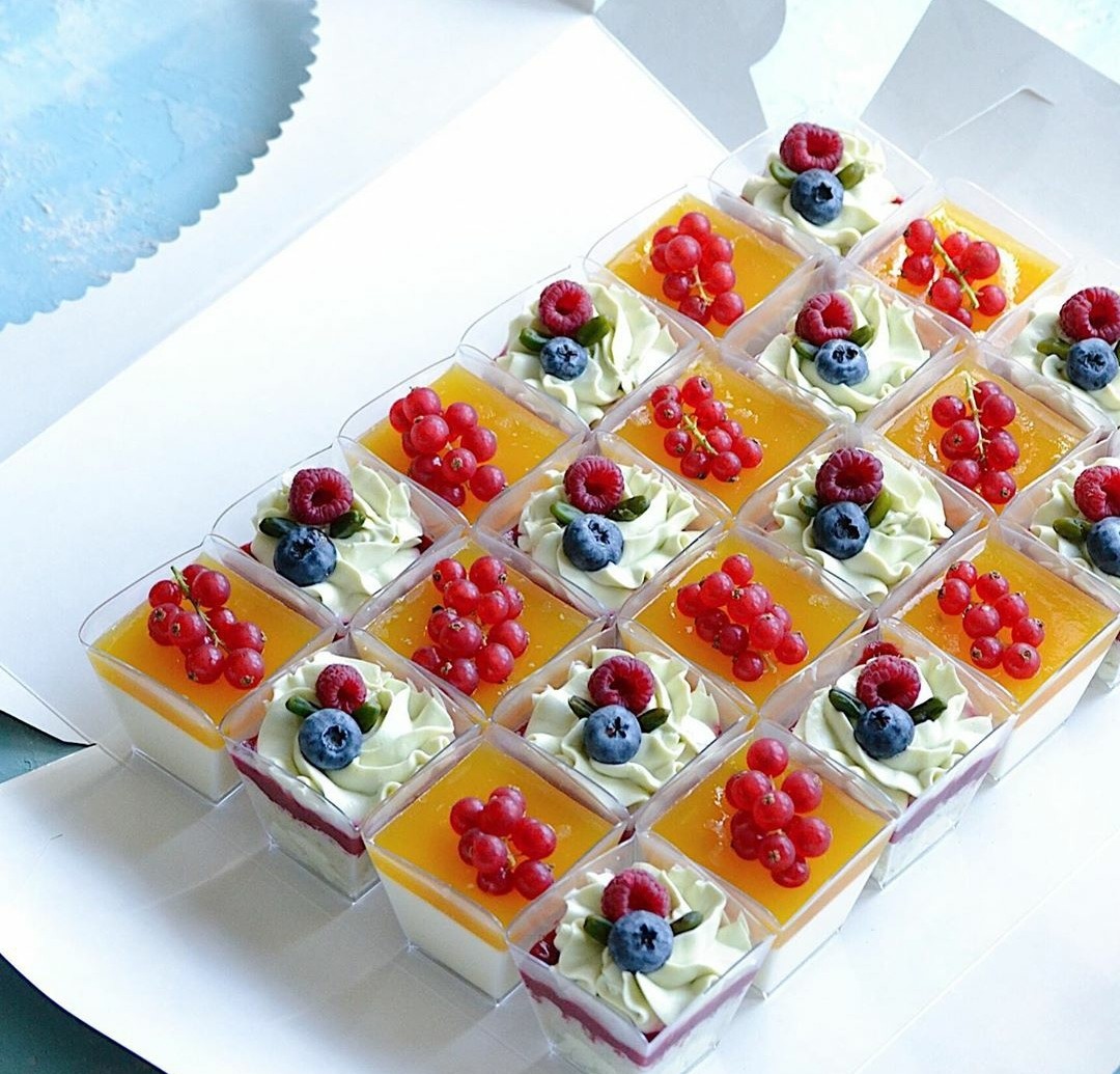 2. Стаканчики (трайфлы) . Например, панакота, может быть в любых оттенках.