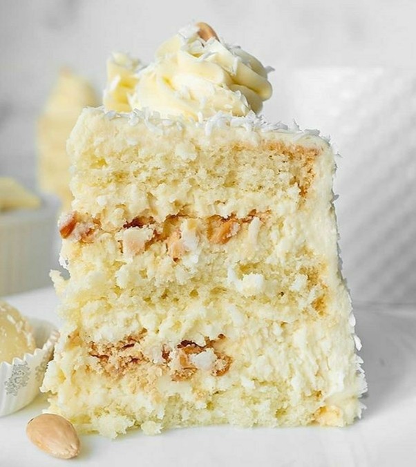 Нежный торт по мотивам таких любимых конфет "Рафаелло". Ванильный бисквит с прослойками вкуснейшего крема пломбир с кокосом и миндалем. Хрустящие прослойки безе и белого бельгийского шоколада с миндалем.